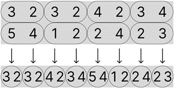 We see that the 2x3 grey box (highlighted in purple) shows the ‘horizontally’ paired numbers, where the second pairing ‘4 2’ starts at the end of row 1 and finishes at front of row 2. This is just something to keep in mind, since the game will automatically place the ‘horizontally’ paired numbers into a 2xN grey box and the user simply has to read the numbers as ‘vertically’ paired numbers.